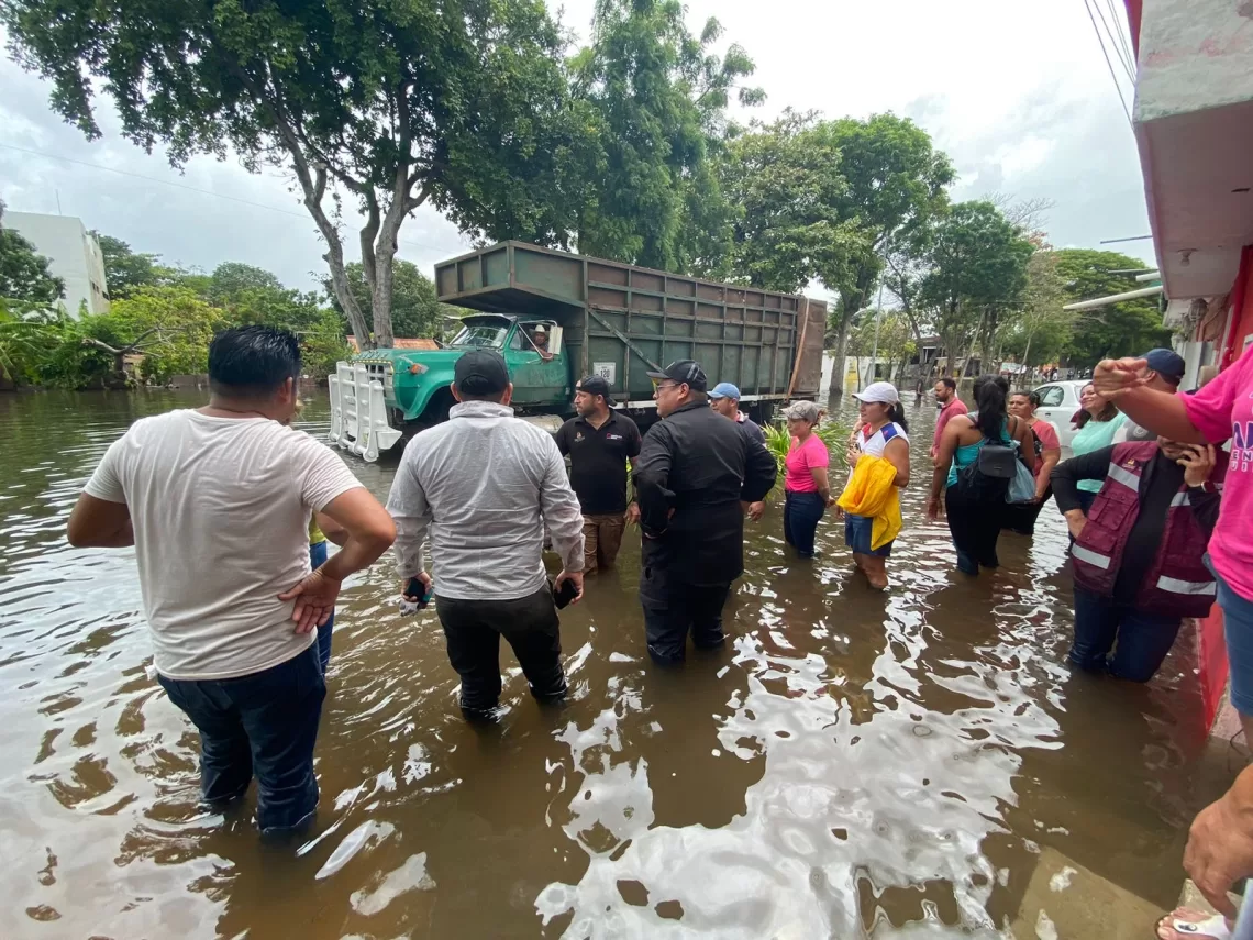 Infraestructura y Obras Públicas, SEOP está trabajando arduamente para desaguar las áreas inundadas. Se están realizando labores de limpieza y desazolve de drenajes para prevenir mayores acumulaciones de agua.