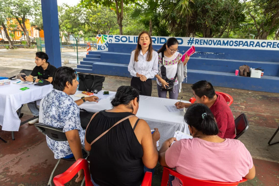 Playa del Carmen, Solidaridad a 23 de enero del 2024.- En un esfuerzo permanente, promoviendo el empleo y el fortalecimiento de la economía local, el gobierno municipal que lidera Lili Campos llevó a cabo en la colonia Ejidal la 32ª Feria del Empleo y Servicios Laborales, ofertando 1 mil 609 vacantes a través de 32 empresas registradas en el servicio municipal de empleo.