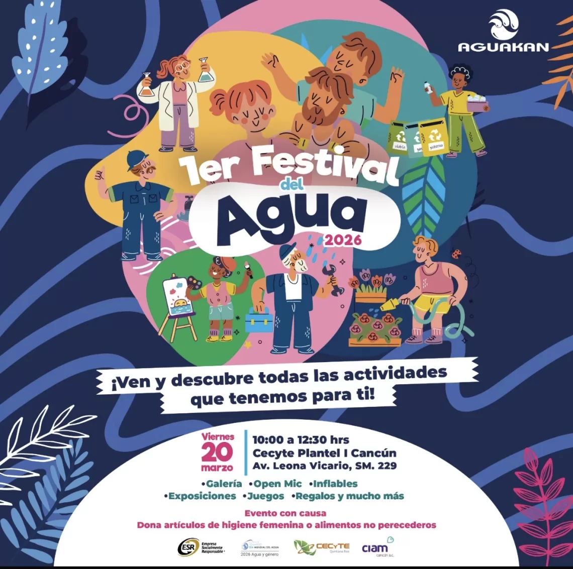 CANCÚN, 11 de marzo.— En el marco del Día Mundial del Agua, Aguakan invita al público en general al 1er Festival del Agua, un evento gratuito y con causa que reunirá entretenimiento, educación ambiental y participación ciudadana en una sola jornada, bajo el lema “El agua nos une, nos da vida y nos mueve”.