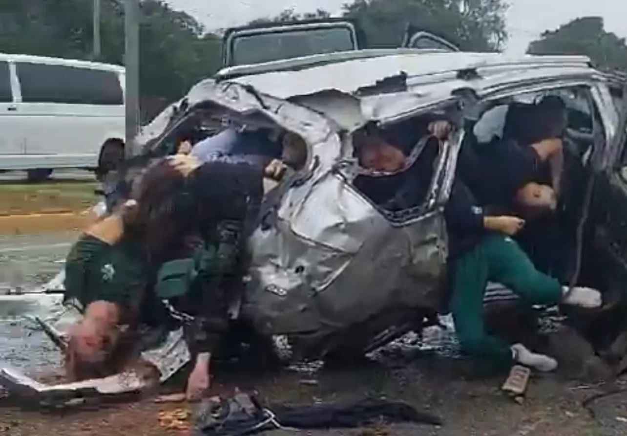 TULUM, 18 de febrero.— Un trágico accidente dejó al menos seis personas muertas sobre la carretera federal Playa del Carmen-Tulum, a la altura de Puerto Aventuras.