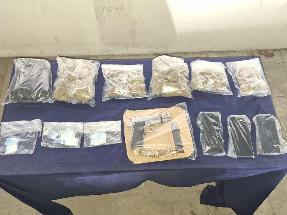 Al realizarles una inspección, los agentes aseguraron un arma corta, 15 cartuchos calibre .380, 76 dosis de marihuana, 37 de cristal, 22 de cocaína, tres celulares y un vehículo. Todos fueron puestas a disposición de la FGE.