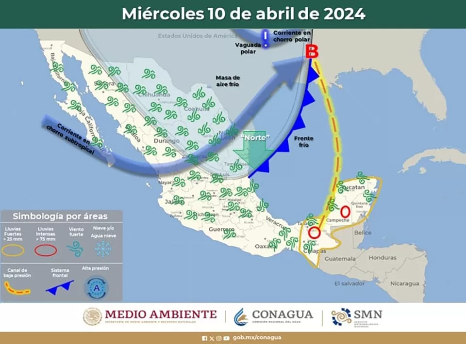 Este fenómeno se caracteriza por la presencia de rachas de viento del sureste y sur con velocidades que oscilan entre los 50 y 60 kph. Se prevé que la intensidad de estas ráfagas disminuya durante la tarde del día jueves 11 de abril.