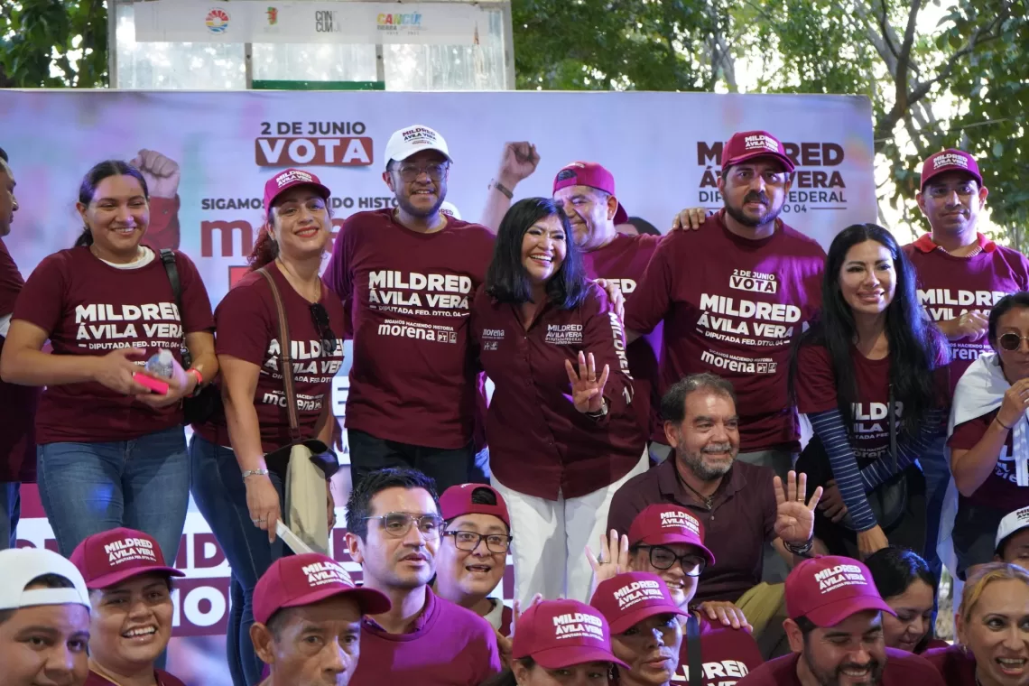 CANCÚN, 26 de mayo.— Mildred Ávila Vera, candidata a diputada federal por el distrito 04 de la coalición “Juntos Hacemos Historia”, destacó su compromiso de trabajar por consolidar una vida libre sin violencia para las mujeres.