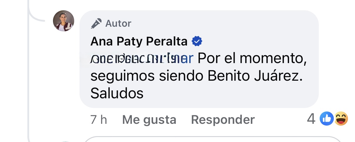 Ante esto, la alcaldesa respondió de manera directa: “Por el momento, seguimos siendo Benito Juárez. Saludos”.