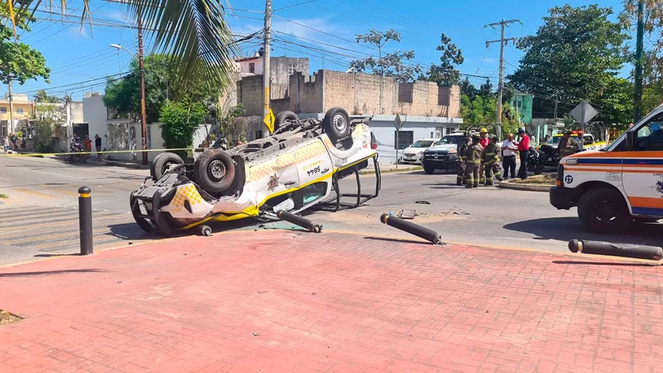 Cancún, 27 de febrero (Infoqroo).- Un aparatoso accidente vehicular se registró en la intersección de la avenida Andrés Quintana Roo con Chacmol, en la supermanzana 96.