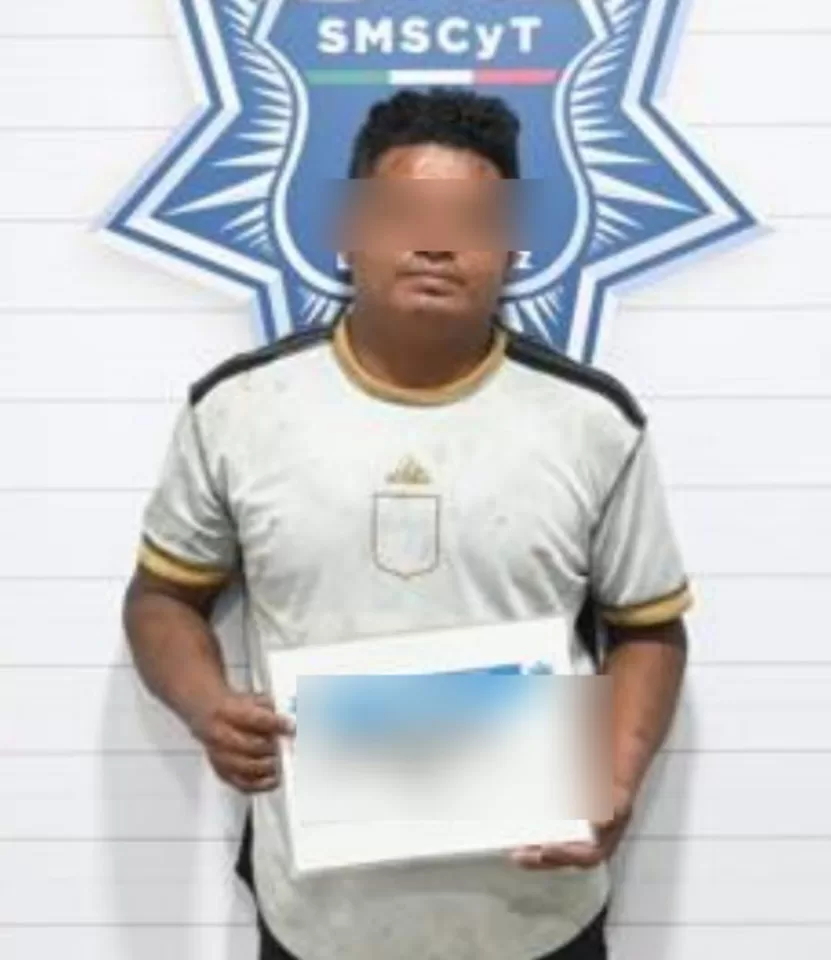 Cancún, 25 de febrero (InZoom.mx).- Elementos de la Secretaría Municipal de Seguridad Ciudadana y Tránsito (SMSCyT) detuvieron a Ángel “N”, de 36 años de edad, originario de Tabasco, por el delito de portación de arma prohibida.