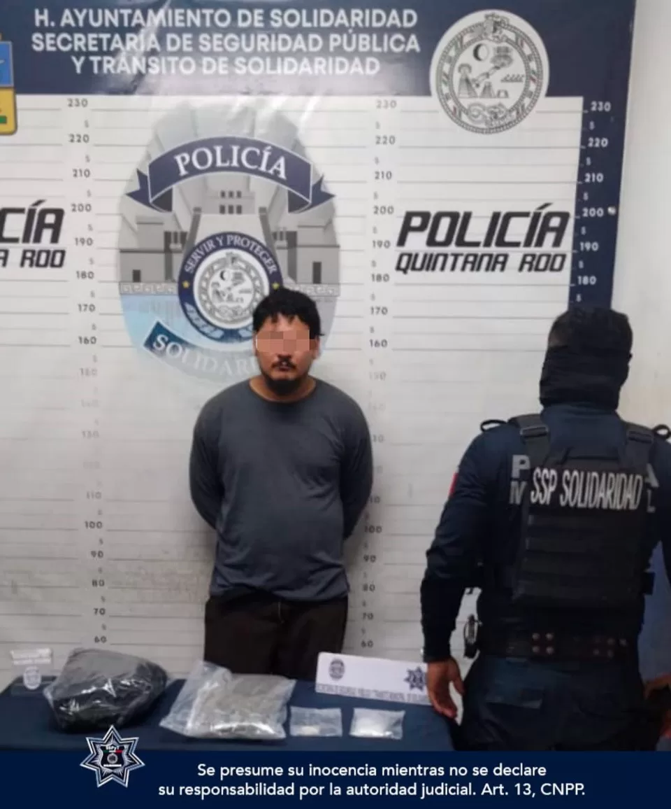 Playa del Carmen, 28 de diciembre (Infoqroo).- La Policía Municipal de Solidaridad detuvo a cuatro personas en distintos hechos y aseguró posibles narcóticos como marihuana, cocaína y metanfetamina, así como un objeto en forma de pistola.