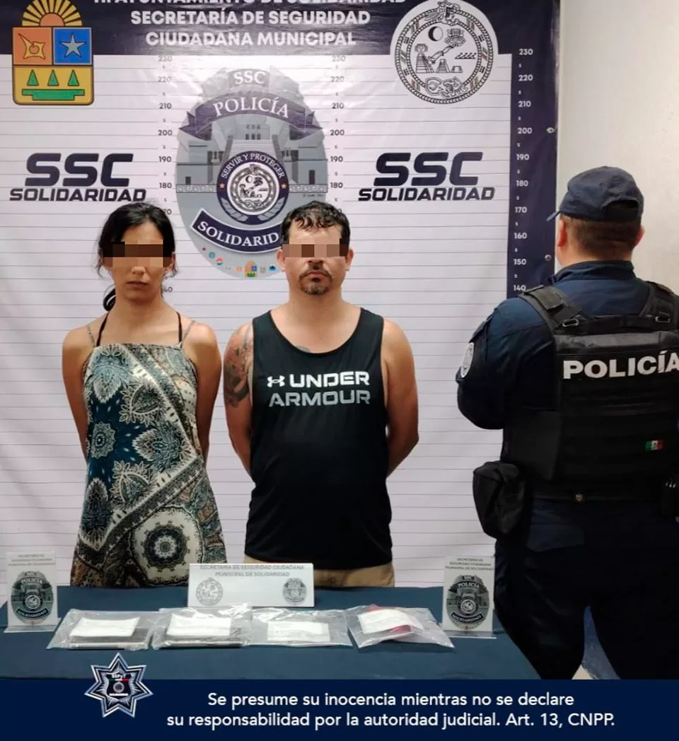 El aseguramiento de Rafael “N”, de 41 años de edad, originario de Guerrero, y de Lizbeth “N”, de 33, procedente de la Ciudad de México, fue efectuado por la Policía Preventiva sobre avenida Universidades, cuando les marcaron el alto por conducir de forma imprudente.