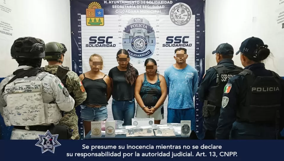 Playa del Carmen, 23 de agosto (Infoqroo).- En el marco del operativo coordinado “Colonia Segura”, la Secretaría de Seguridad Ciudadana Municipal de Solidaridad, la Guardia Nacional y la Secretaría de la Defensa Nacional aseguraron a cuatro personas, 1 arma de fuego, 29 cartuchos y 84 posibles dosis de narcóticos en la colonia In House.