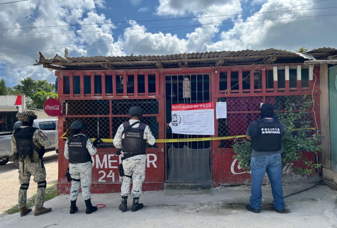 Otro cateo tuvo lugar en un inmueble localizado en la carretera Villahermosa-Chetumal de la localidad Nicolás Bravo del municipio de Othón P. Blanco, donde aseguraron sustancia sólida de color blanco y vegetal verde y seco.
