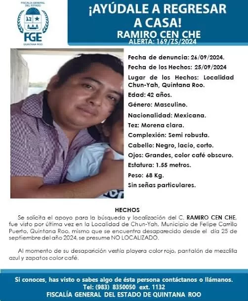 La noche del miércoles 25 de septiembre, Ramiro Cen Che fue capturado por hombres armados cerca de su hogar.