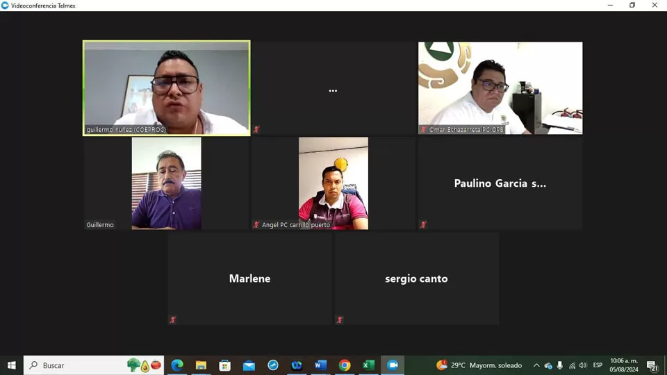 Chetumal, 5 de agosto (Infoqroo).- El director general de Protección Civil de Quintana Roo (Coeproc), Guillermo Núñez Leal, encabezó una reunión de trabajo de manera virtual con los directores municipales de Protección Civil, en la que se acordó iniciar con preparativos ante la presencia de una zona de baja presión en Océano Atlántico con alta probabilidad de desarrollo ciclónico en los próximos siete días.