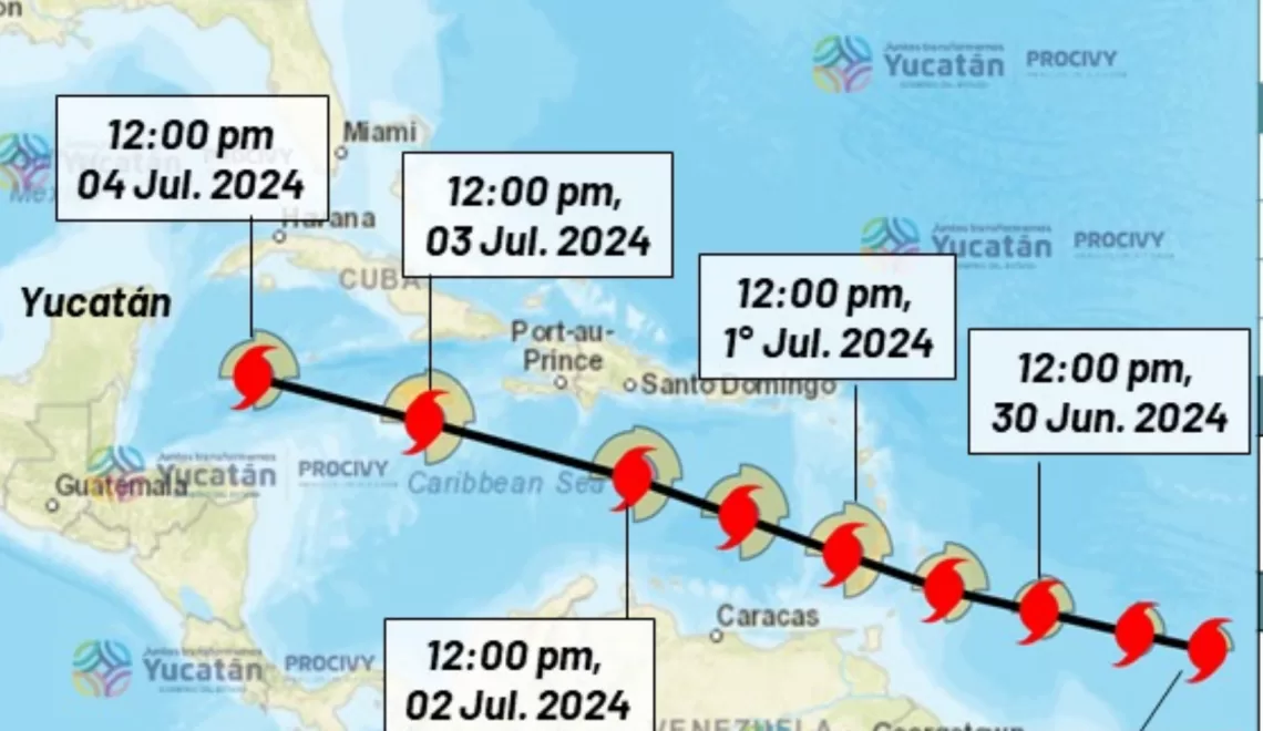 El histórico huracán Beryl mantenía una trayectoria hacia el oeste, lo que podría llevarlo a tocar tierra en Quintana Roo, hacia el viernes 5 de julio.