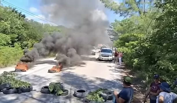 MAHAHUAL, 23 de julio.– Habitantes del poblado de Mahahual bloquearon el acceso a la Costa Maya, a la altura del entronque que comunica a Xkalak, en protesta por los recientes operativos para desalojarlos de los predios que ocupan de manera irregular.