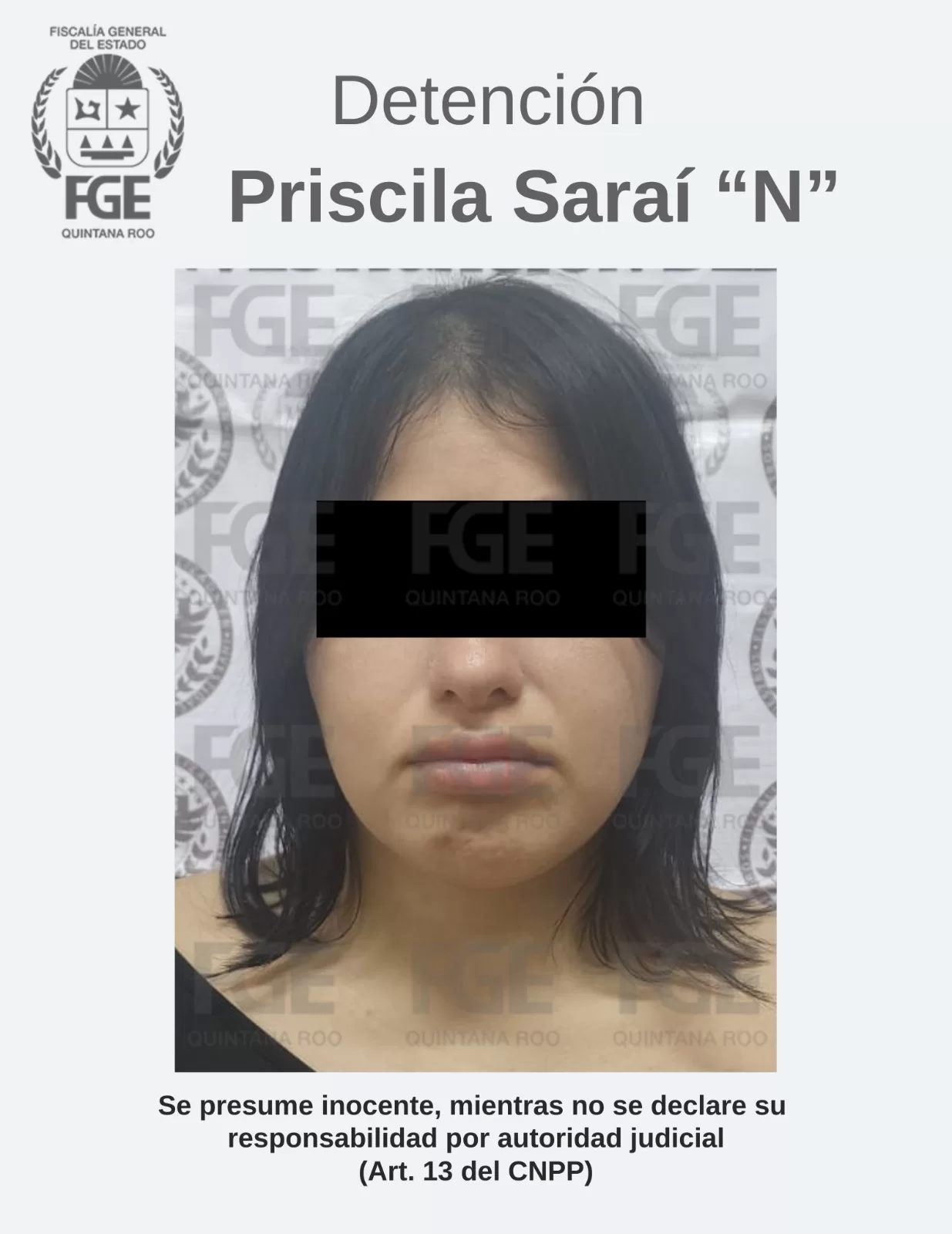 Tras su captura, Priscila Saraí “N” fue trasladada a Quintana Roo y presentada ante las autoridades competentes. La FGE de Quintana Roo confirmó que su situación jurídica se resolverá dentro del plazo constitucional establecido.