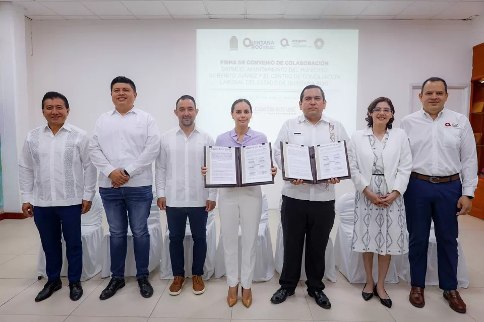 A su vez, el director del Centro de Conciliación Laboral de Quintana Roo, Iván Andrés Figueroa Reyna, agradeció a la Presidenta Municipal su compromiso y disposición para sumar esfuerzos en la construcción de una sociedad más justa, donde prevalezca el diálogo para dar fin a discrepancias, lo que fortalecerá también la confianza en las instituciones.
