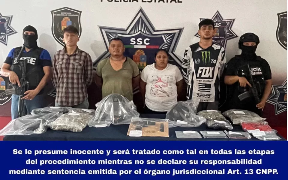 Cancún, 12 de julio (Infoqroo).- Agentes de la Secretaría de Seguridad Ciudadana en coordinación con la Fiscalía General del Estado, detuvieron a Fidel “N”, Alizbethiana “N”, Juan “N” y Emmanuel “N”, presuntos implicados en delitos contra la salud.