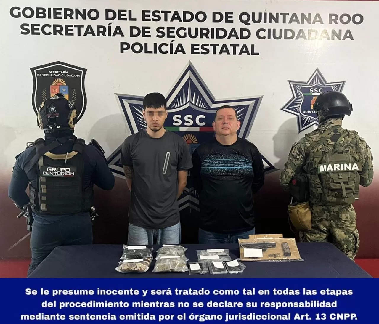 Cancún, 22 de octubre (InZoom.Mx).- Agentes de la Secretaría de Seguridad Ciudadana detuvieron a los colombianos Camilo Andrés “N” y Jhon Fredy “N” como presuntos implicados en el delitos Contra la Salud y delitos previstos en la Ley Federal de Armas de Fuego y Explosivos.