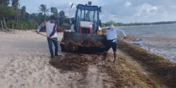 PLAYA DEL CARMEN Gobierno de Estefanía Mercado atiende recale atípico de sargazo en playas provocado por surada 10 enero, 2026