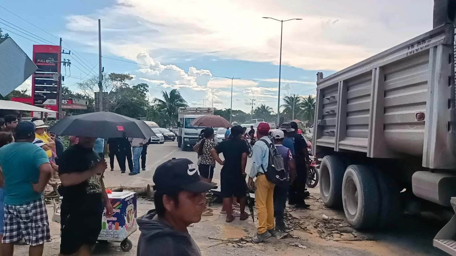 Los manifestantes bloquearon la carretera con piedras y troncos, lo que provocó que se formaran filas de vehículos de más de cuatro kilómetros en ambas direcciones, afectando a numerosos conductores que buscaban entrar o salir a la capital quintanarroense.