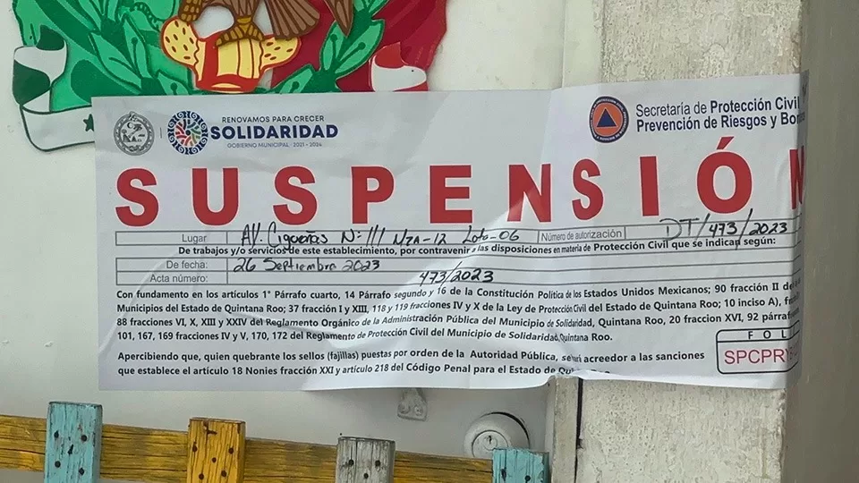 De acuerdo con un reporte de la Secretaría de Protección Civil, Prevención de Riesgos y Bomberos de Solidaridad, se clausuró la estancia infantil ubicada en avenida Cigüeñas por la falta de licencias y permisos requeridos para su operación, así como la ausencia de medidas de seguridad.