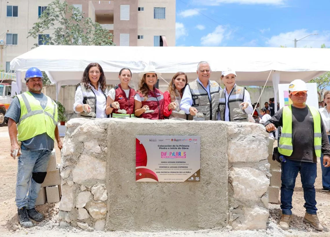 Cancún. – Con el objetivo de fortalecer el desarrollo integral de la población en zonas prioritarias, la gobernadora Mara Lezama Espinosa colocó la primera piedra para la construcción del nuevo Centro de Desarrollo Comunitario DIF-PILARES, acompañada por la presidenta honoraria del Sistema DIF Quintana Roo, Verónica Lezama Espinosa y la presidenta municipal de Benito Juárez, Ana Paty Peralta.