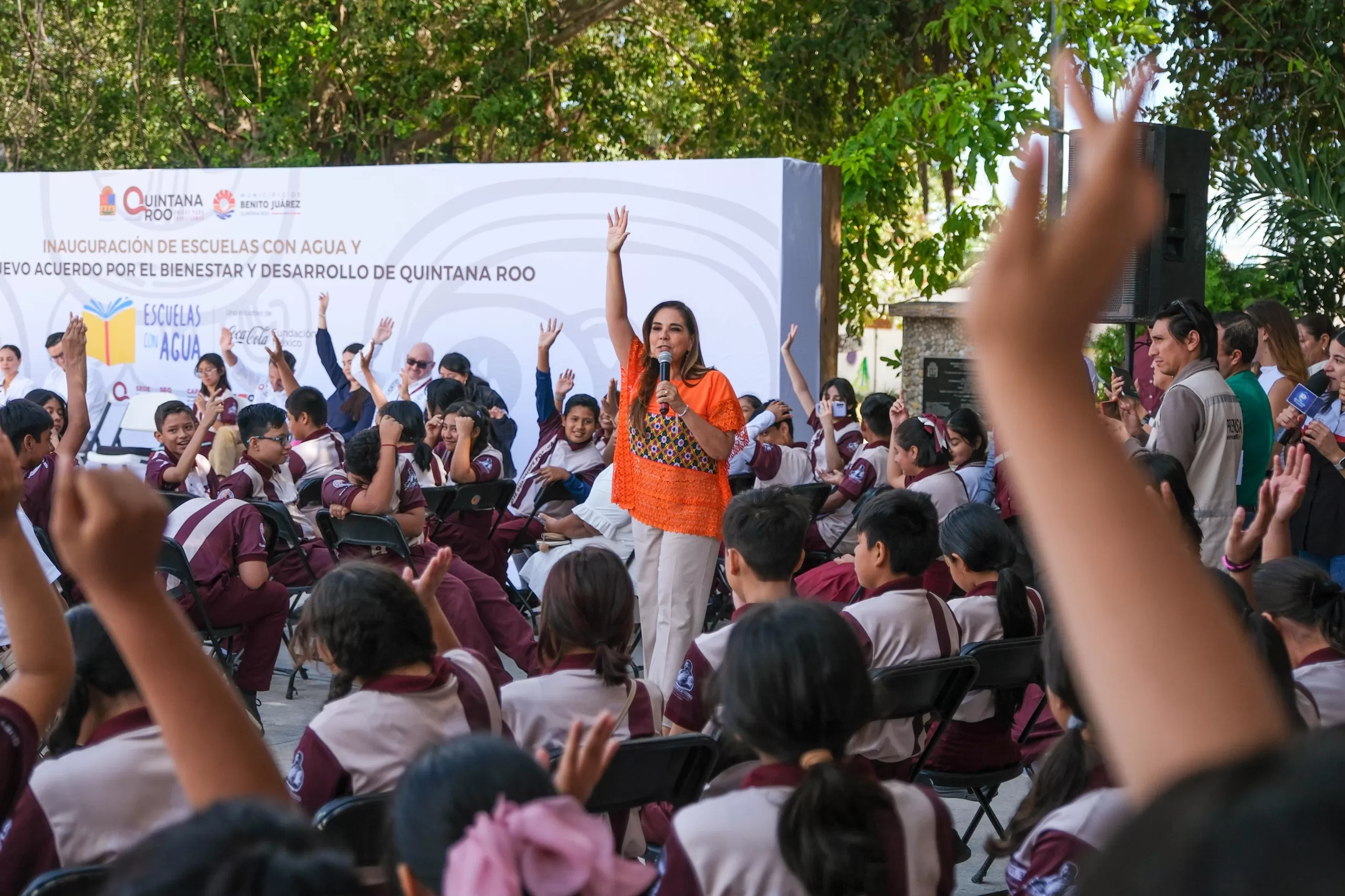 En la escuela secundaria técnica 35 “José Guadalupe Posada”, en Cancún, y con la presencia del director general de la Fundación Coca Cola México, Rodrigo Feria Cano, y del gerente de Innovación y Tecnología Institucional de la CONAGUA, Amílcar Ganado Díaz, la gobernadora Mara Lezama agradeció la colaboración y compromiso con el pueblo de Quintana Roo: “su apoyo es una semilla de esperanza que dará frutos en cada escuela, en cada hogar, en cada comunidad”.