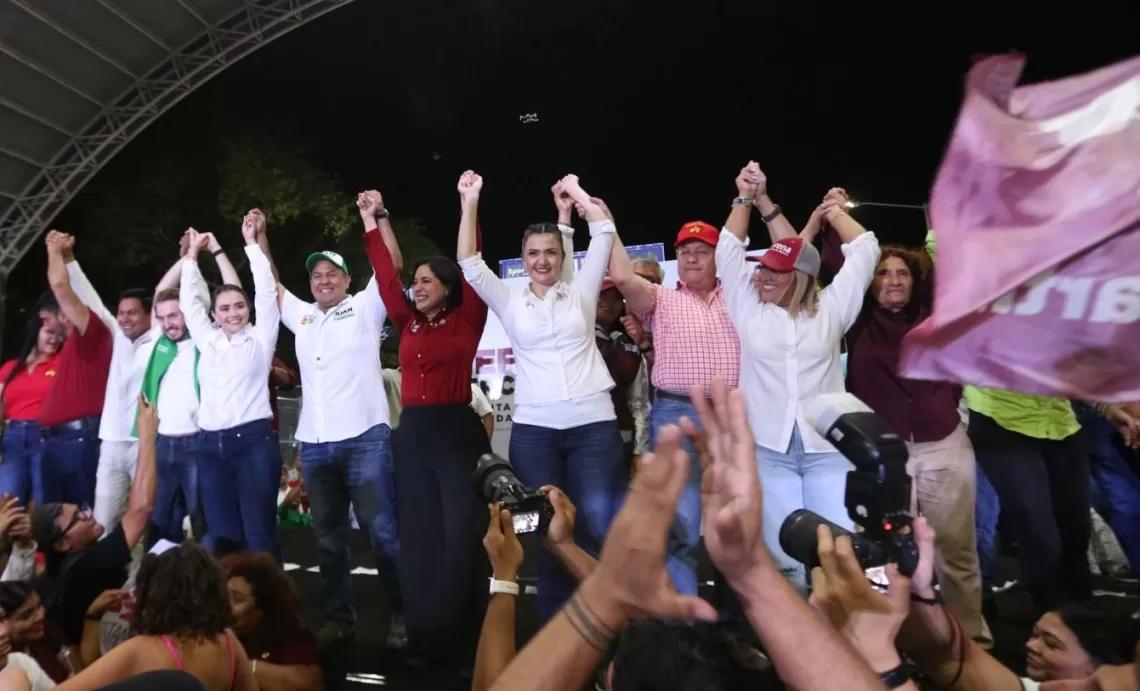 “Todos sabemos que Claudia va a ganar, hasta la señora X lo sabe, el reto hoy es que llegue también una presidenta municipal que comparta los valores de la cuarta transformación como lo es Estefanía Mercado quien trabajará por todas las familias solidarenses con amor y honestidad”, expresó.