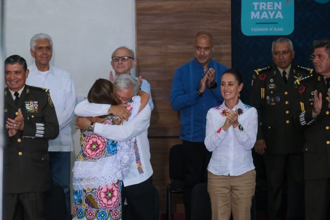 El abrazo entre López Obrador y Mara Lezama fue más efusivo y prolongado que nunca, reflejando la profunda conexión y el respeto mutuo que se tienen.