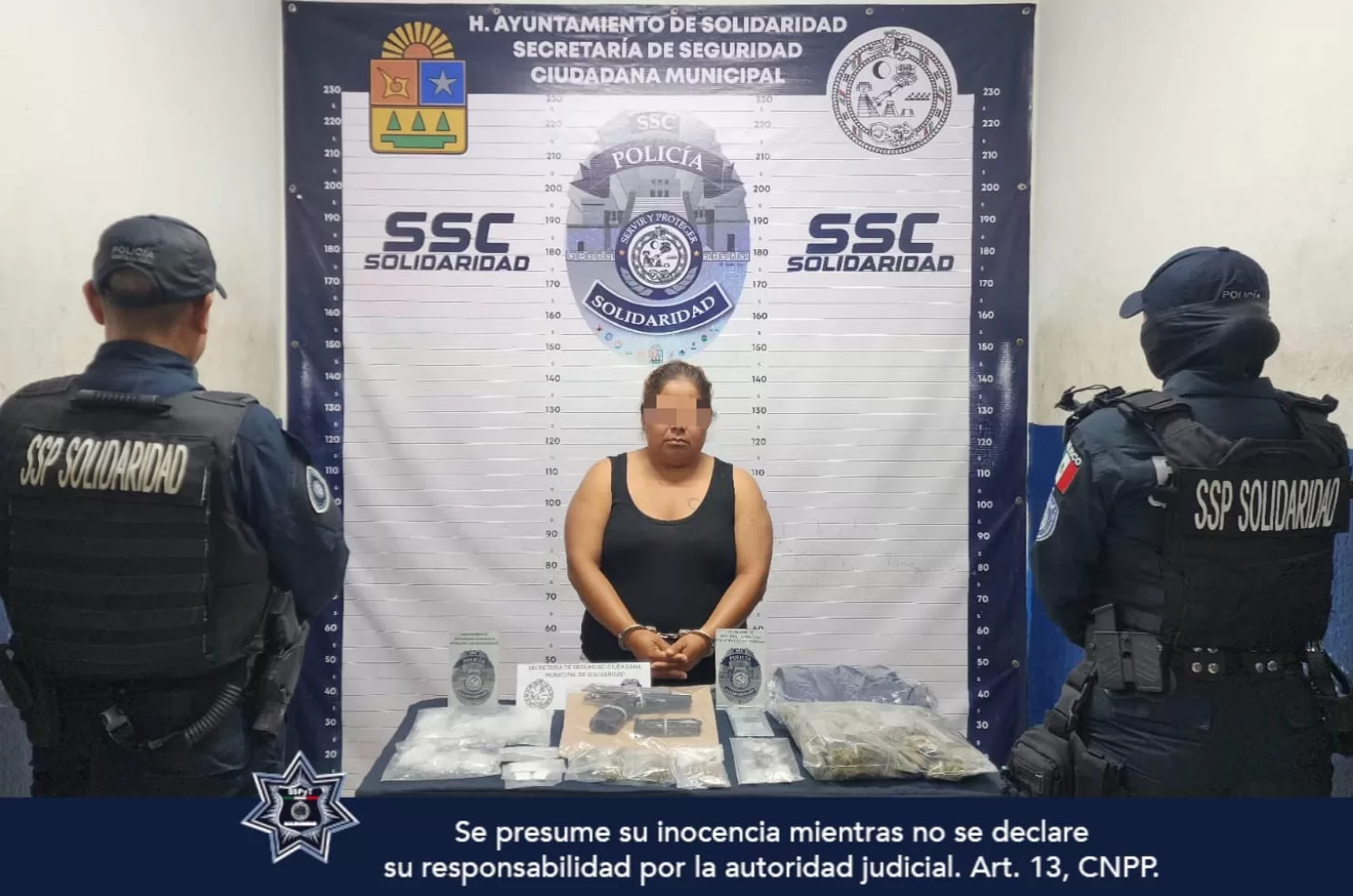 Playa del Carmen, 4 de agosto (Infoqroo).- En un operativo de vigilancia, la Policía Municipal de Solidaridad aseguró a una mujer en posesión de más de 80 envoltorios de posibles narcóticos, un arma de fuego y cartuchos en el fraccionamiento Villas del Sol de Playa del Carmen.
