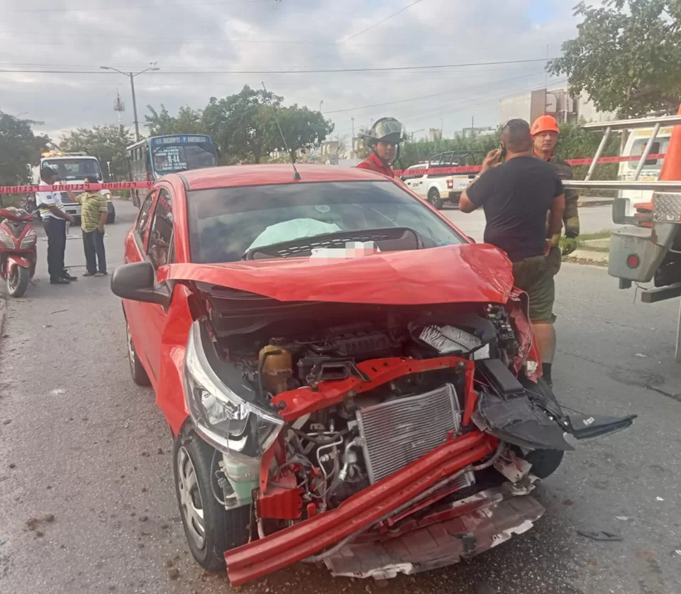 El percance, que dejó saldo de 7 personas lesionadas, 3 de las cuales requirieron traslado a un hospital, ocurrió a las 8:22 de la mañana en la intersección de la Av. Tulipán con calle Ing. Antonio Polo Rodríguez, en la supermanzana 260.