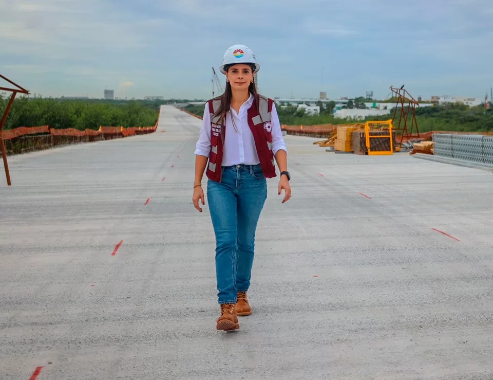En su visita, Ana Paty Peralta constató la labor de la máquina denominada “Top Down” que construye las estructuras del puente de arriba para abajo para ser más eficiente y cuidar el medio ambiente; además hizo un recorrido en lancha para supervisar la estructura que se encuentra sobre la laguna en el lado del mangle.
