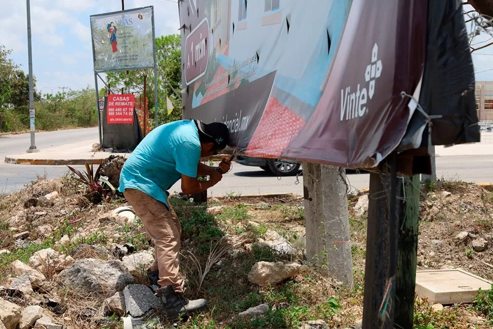 Los anuncios representaban un riesgo para las y los ciudadanos. Se ubicaban en la Av. Kabah con Av. Cancún, otro sobre el bulevar Luis Donaldo Colosio y el tercero en la Rioja esquina con 145.