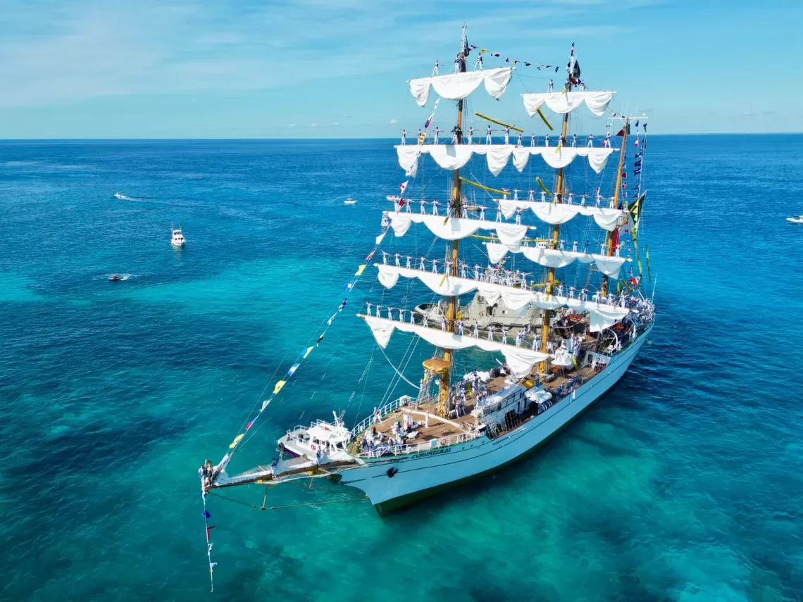 La estancia del navío en Cozumel permitirá al público admirar de cerca esta imponente embarcación y conocer más sobre la labor de formación de los futuros oficiales navales.