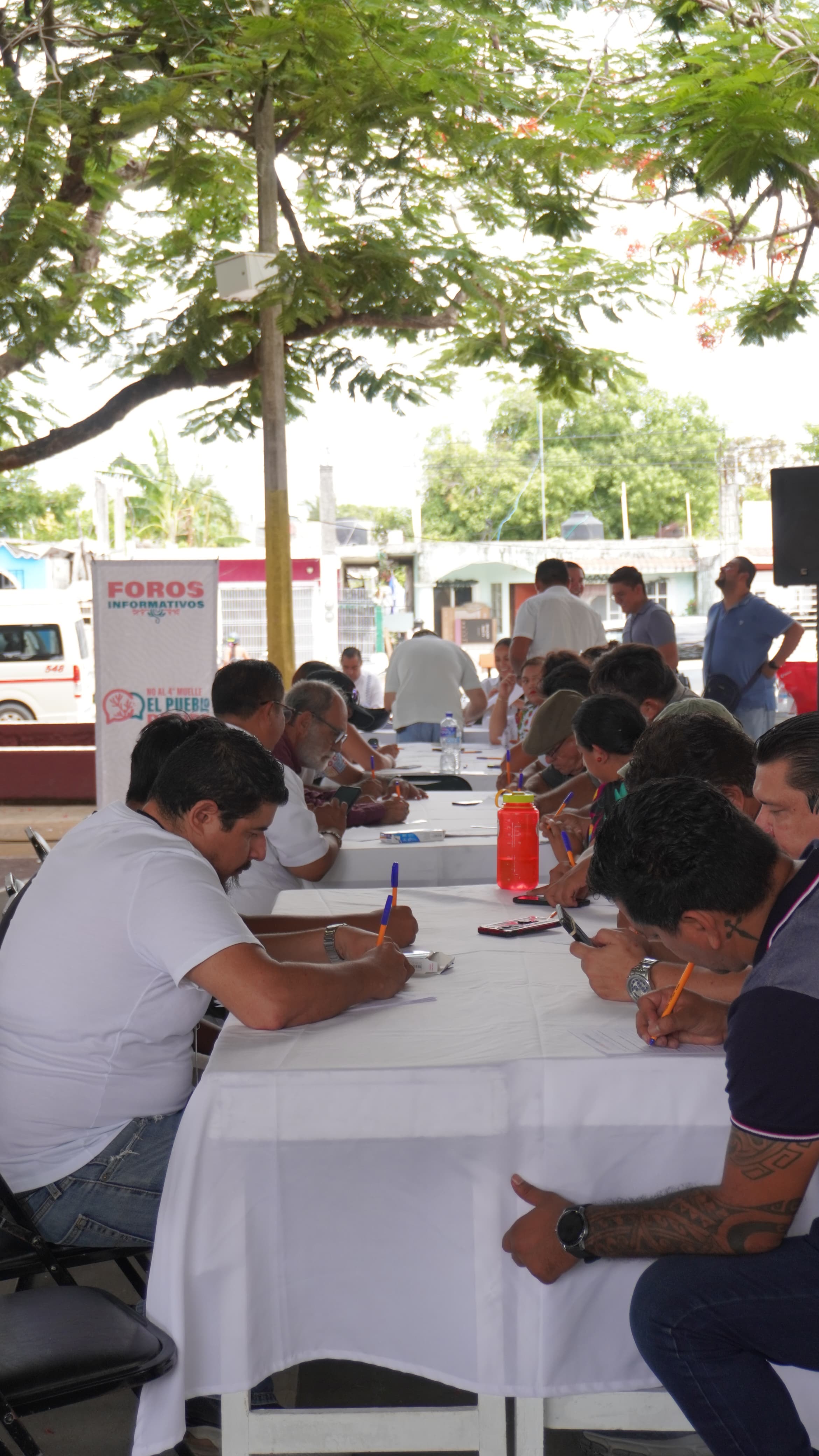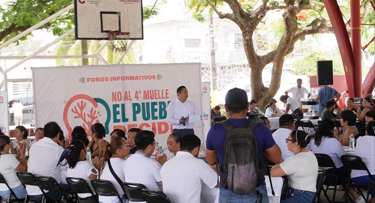 COZUMEL, 29 de junio.— Como resultado del primer Foro Informativo “El Pueblo Decide”, habitantes de Cozumel, organizaciones y colectivos acordaron presentar un expediente colectivo ante la Secretaría de Medio Ambiente y Recursos Naturales (SEMARNAT) para solicitar formalmente la cancelación del proyecto “Cuarto Muelle”.