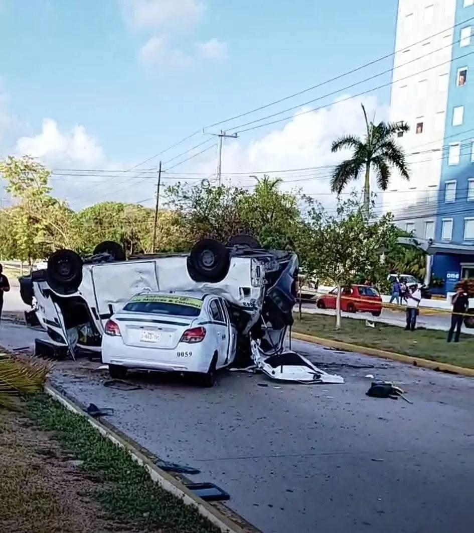 De acuerdo con el reporte oficial de Tránsito, el percance involucró a un Chevrolet Aveo gris, una Nissan Urvan blanca de transporte de pasajeros y un taxi Dodge Attitude, ambos del sindicato de taxistas “Andrés Quintana Roo”, de Cancún.