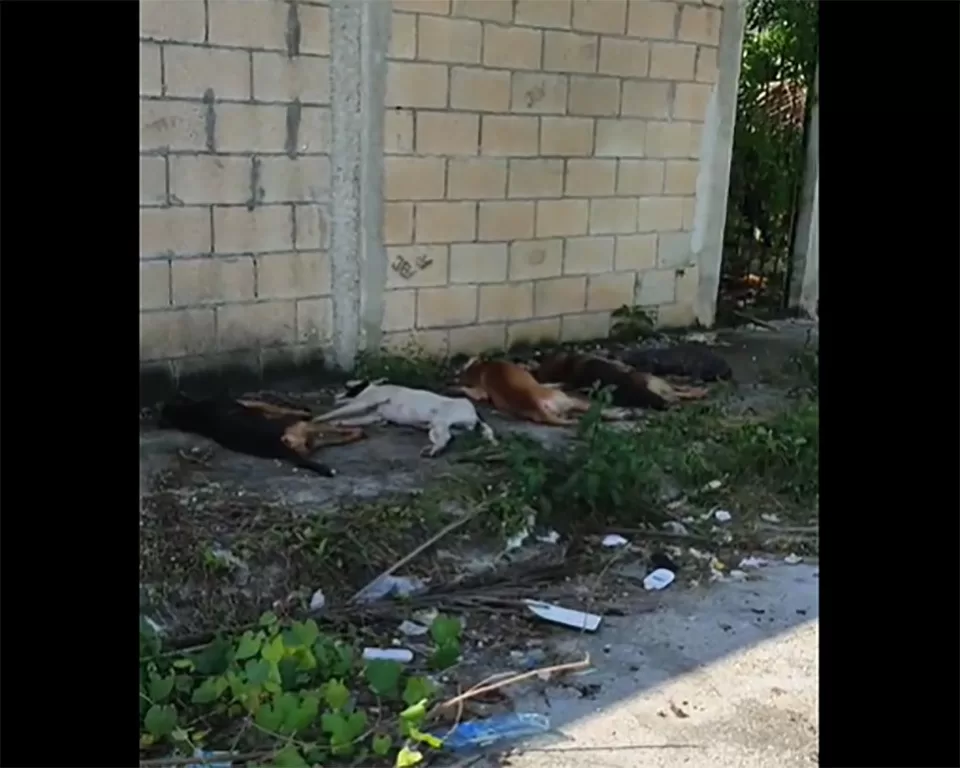 Cancún, 5 de enero (Infoqroo).- En un hecho censurable por la sociedad, al menos siete perros fueron encontrados sin vida esta mañana, en la calle 124 de la región 237, presuntamente víctimas de envenenamiento según relatos de los vecinos.