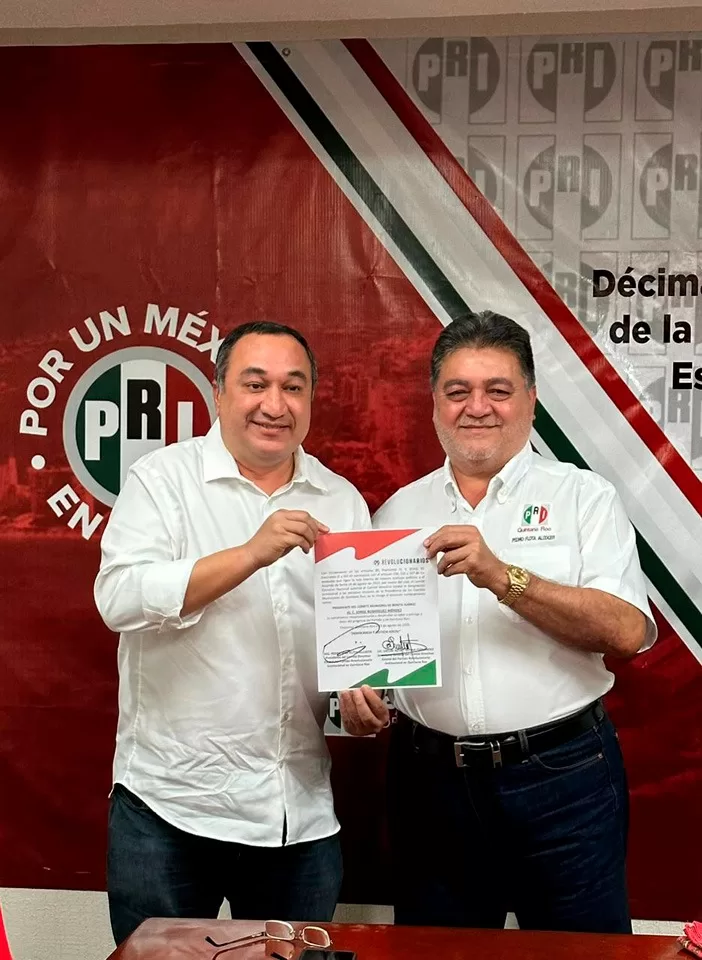En una ceremonia que se llevó a cabo en la sede del PRI en Chetumal, el dirigente estatal príísta, Pedro Flota Alcocer hizo el nombramiento oficial de Jorge Rodríguez, como nuevo dirigente del PRI en Cancún.