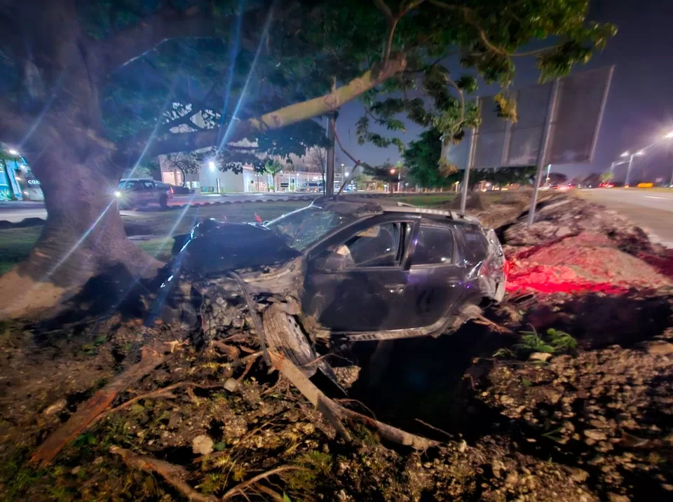 En su trayectoria y debido a la velocidad en que circulaba al colisionar con dos postes de alumbrado público y una palmera los derribó, saliéndose del camellón central para continuar avanzando en sentido opuesto a la circulación hasta chocar nuevamente contra la guarnición del residencial Lagos del Sol provocando su voladura. No se proporcionaron datos sobre el número de ocupantes del vehículo y si fue necesario ser trasladados a alguna clínica para recibir atención médica.