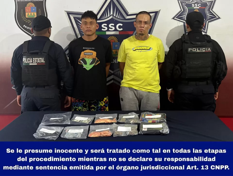 Cancún, 5 de marzo (InZoom.mx).- Humberto Alejandro “N”, alias Alex y/o Pelón, y Daniel Samuel “N”, alias Dani, presuntos implicados en delitos contra la salud, fueron detenidos por elementos del Grupo Centurión de la Secretaría de Seguridad Ciudadana.