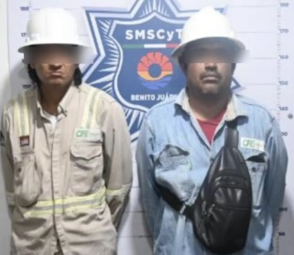 Los sujetos, identificados como Elmer “N”, de 39 años, y Guillermo “N”, de 37, fueron arrestados luego de un reporte de auxilio recibido mientras los elementos de esta corporación realizaban labores preventivas en la Supermanzana 200, manzana 115.