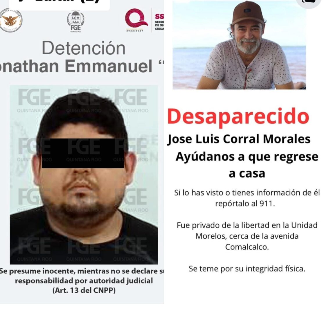 El 30 de octubre, las autoridades lograron encontrar el cuerpo sin vida de la víctima, identificado como José Luis Corral Morales, en un área verde de la Carretera Federal Cancún-Mérida.