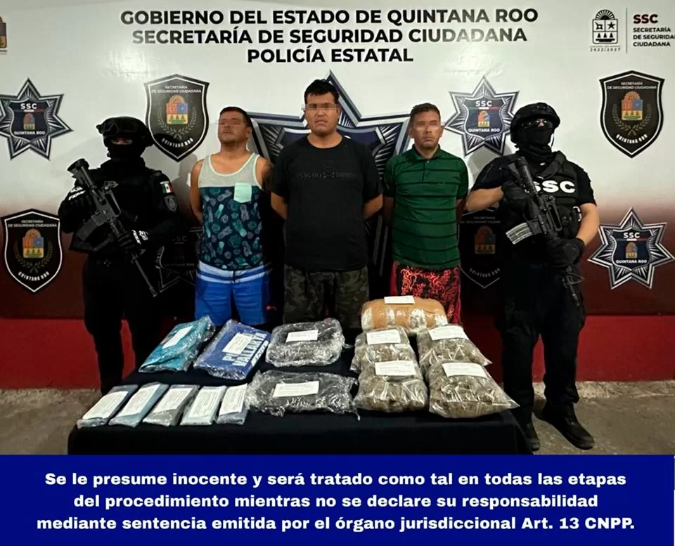 Cancún, 5 de enero (Infoqroo).- Agentes de la Secretaría de Seguridad Ciudadana sorprendieron en la Avenida José López Portillo con dirección a la Tulum en la Región 63, a la altura del crucero, a cuatro sujetos que intercambiando bolsitas de plástico transparentes, cada una vegetal verde con las características a la marihuana.