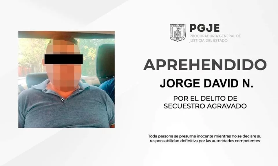 Agentes de la Policía de Investigación de la PGJE lograron la ubicación, detención y el traslado del imputado a Tlaxcala, con el objetivo de ponerlo a disposición de la autoridad judicial que lo requiere. De acuerdo con los hechos, Jorge David N., participó en el secuestro de un sujeto el 14 de febrero pasado, cuando tres hombres lo privaron de la libertad y pidieron una cantidad monetaria a la familia para su liberación, la cual entregaron en la comunidad de Chapultepec, en el municipio de Huamantla.