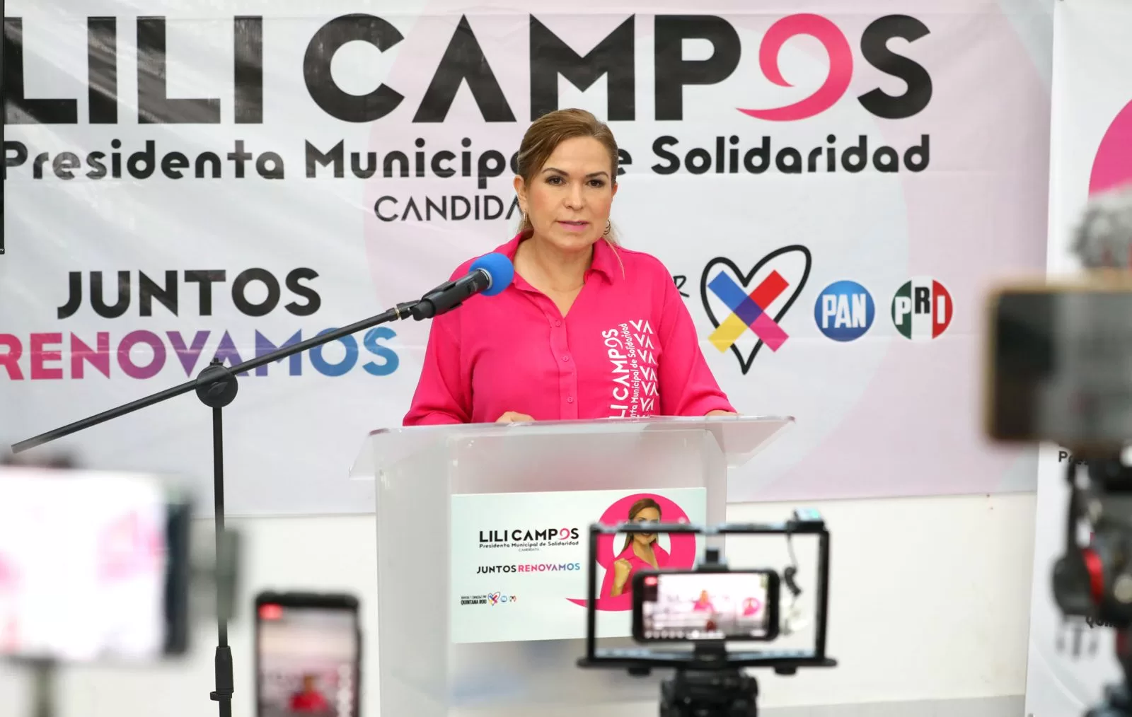 24 de abril del 2024, Solidaridad, Quintana Roo.- Durante su mañanera, el propio presidente López Obrador puso en evidencia la guerra sucia llena de falsedades, infamias y ataques emprendida por los verdes disfrazados de morena, quienes sólo buscan enturbiar el ambiente electoral, señaló Lili Campos, candidata a la presidencia municipal de Solidaridad, por la alianza “Fuerza y Corazón por Quintana Roo” en rueda de prensa.