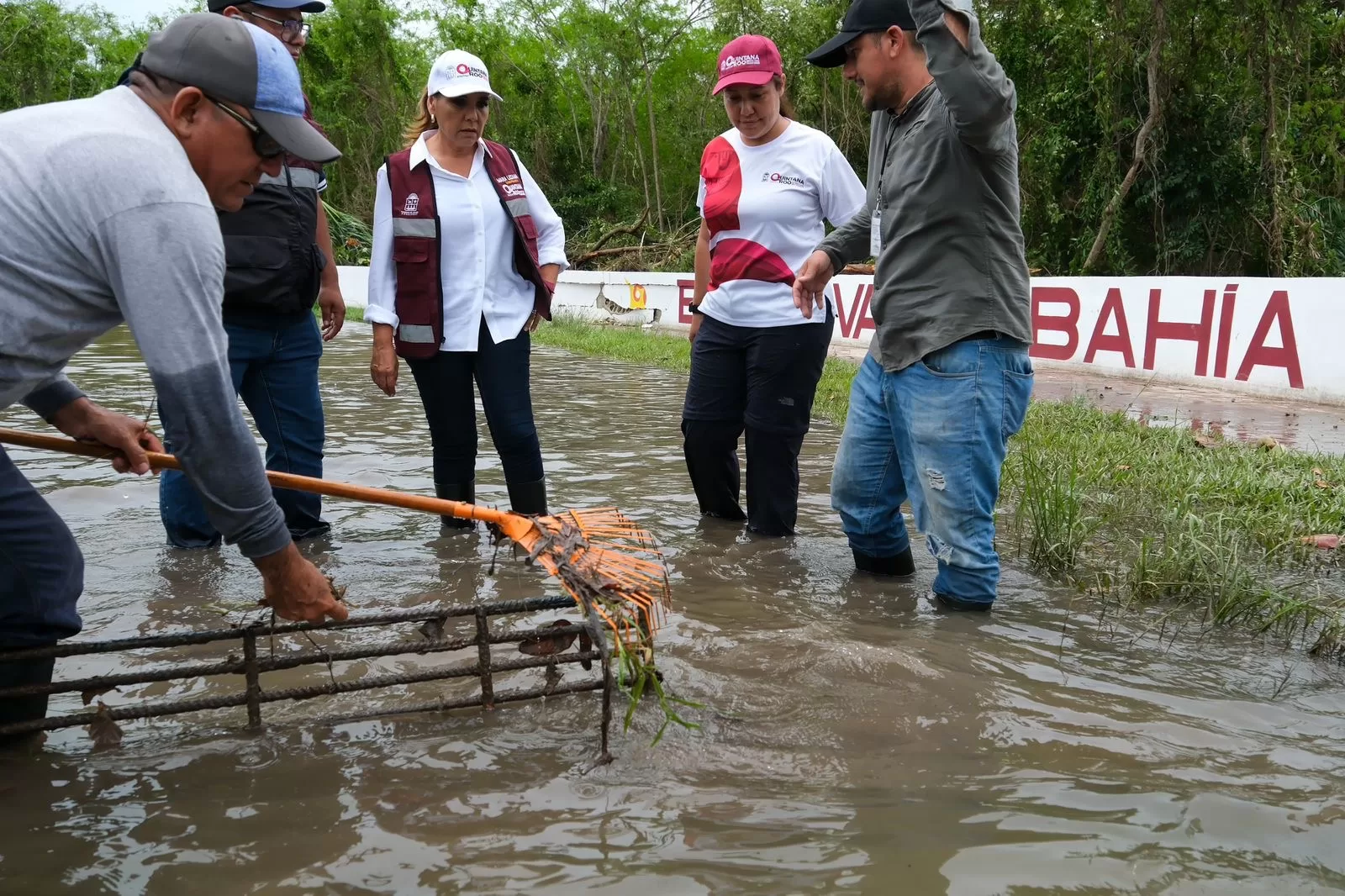 Entre los secretarios que la acompañaron estuvo el de Salud, Flavio Carlos Rosado; por el Sistema DIF la directora Abril Sabido; por Conagua, su directora Erika Ramírez.