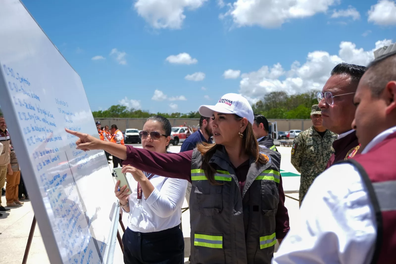 Cancún.- Desde el Puesto de Comando del C5 de Cancún, la gobernadora Mara Lezama Espinosa supervisó las estrategias del Primer Simulacro Nacional de Protección Civil 2025, con la hipótesis de explosión e incendio.