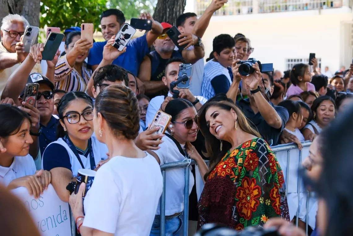 Puerto Morelos.- Durante la asamblea Pensión Mujeres Bienestar que encabezó la Presidenta Claudia Sheinbaum Pardo en Puerto Morelos, la gobernadora Mara Lezama Espinosa expresó el respaldo de todas y decirle que no está sola en la lucha por el empoderamiento de la mujer mexicana.