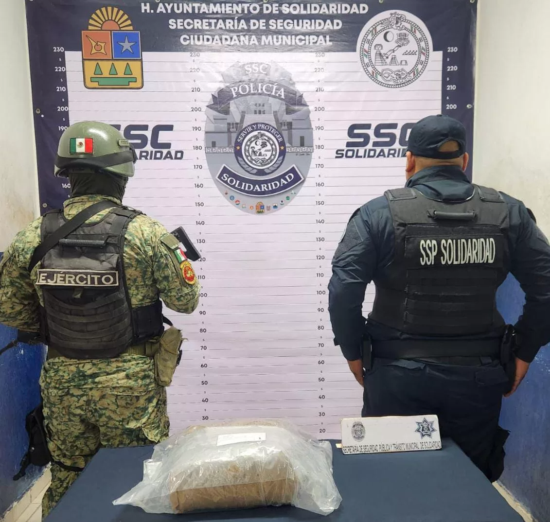 Playa del Carmen, 17 de marzo (Infoqroo).- La Policía Municipal de Solidaridad en coordinación con la Secretaría de la Defensa Nacional aseguraron un paquete con posibles drogas en respuesta a un reporte al número de emergencias 9-1-1.