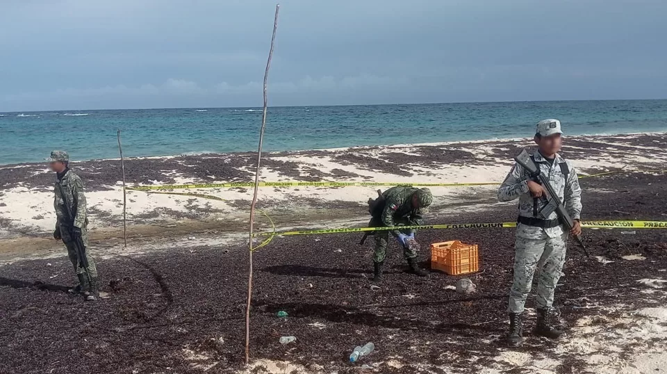 El hallazgo se registró cuando personal del Ejército Mexicano y la Guardia Nacional realizaba recorridos de seguridad y prevención del delito en el área de playa, conocida como Castillo Real, en el municipio de Cozumel.